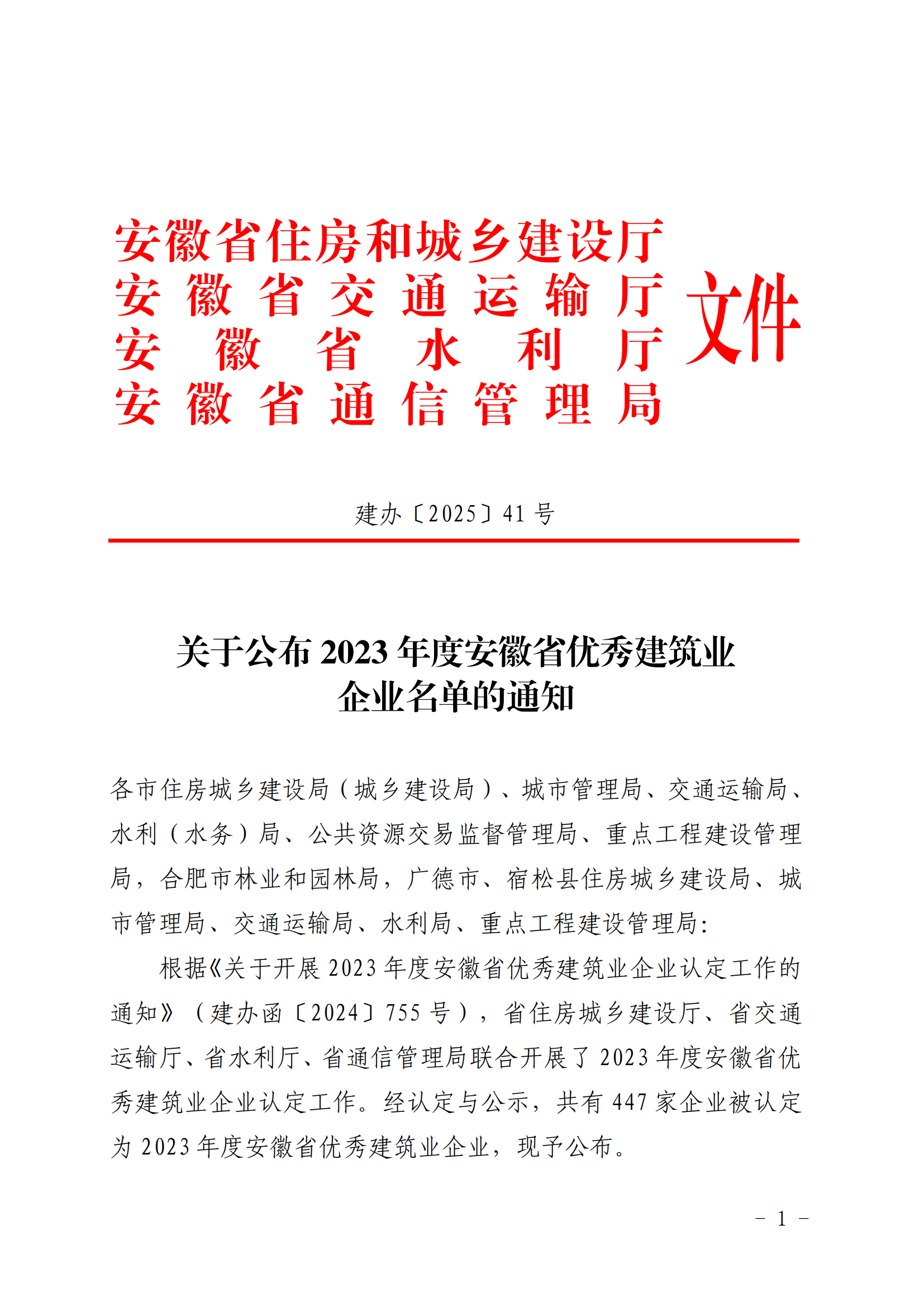 近日,由安徽省住房和城鄉(xiāng)建設(shè)廳、省交通運輸廳、省水利廳、省通信管理局聯(lián)合組織開展的2023年度安徽省優(yōu)秀建筑業(yè)企業(yè)認(rèn)定工作圓滿收官。經(jīng)過嚴(yán)格評審與層層篩選,我司從眾多申報企業(yè)中脫穎而出,成功入選安徽省優(yōu)秀建筑業(yè)企業(yè)(工程招標(biāo)代理類)榜單!